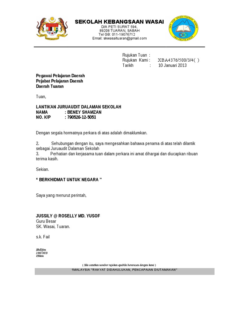 Surat Iringian Pengesahan Lantikan Audit Dalaman Pdf